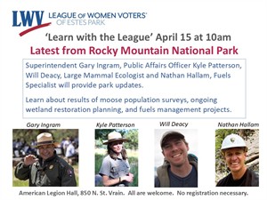 Superintendent Gary Ingram, Public Affairs Officer Kyle Patterson, Large Mammal Ecologist Will Deacy, and Fuels Specialist Nathan Hallam will provide park updates. Learn about results of moose population surveys, ongoing wetland restoration planning, and fuels management projects.
